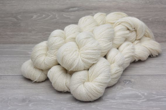 The main factor determining the quality of merino wool is its softness which depends upon the fineness of the fibres. We use extrafine merino (19.5 microns) which is some of the finest commercially available for hand dyers. This results in a supersoft yarn that feels gentle against the skin